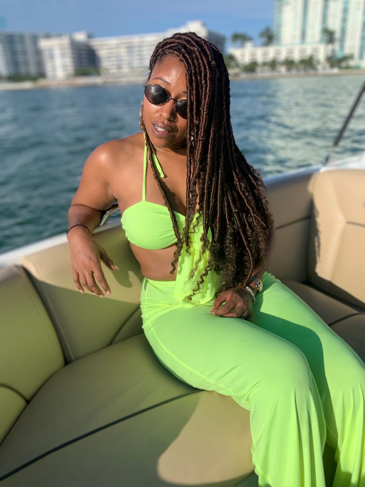 Are you ready for this cute beach palazzo set or nahhhhhhh? This cute set very sexy, very chic, very much summer time fun. This set has stretchy fabric , high waist pants and a v-neck halter self tie top. This top can be worn many ways as an halter or tube top.