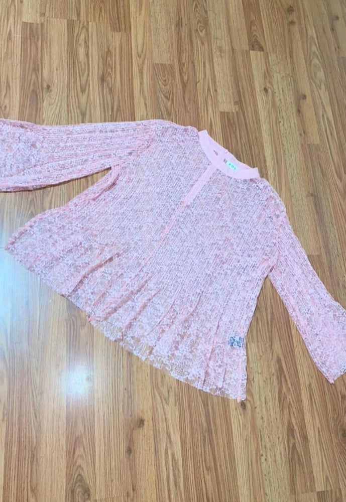 Cute collared flared out top. Perfect with jeans or shorts. Lace and lightweight material. Model has on Medium.