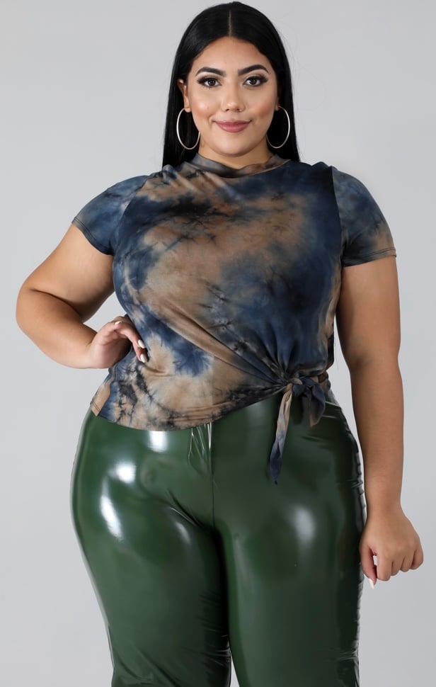 This top is perfect for the upcoming warm days ahead. Stretchy material, round neckline with a front tie knot. Tie it up or leave it untied it’ll look cute either way.